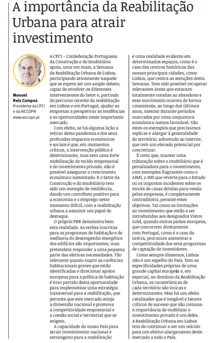 Artigo da CPCI e da AICCOPN na edição do Público Imobiliário desta semana, disponível para leitura aqui.