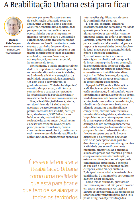 Artigo da AICCOPN na edição do Público Imobiliário desta semana, disponível para leitura aqui.