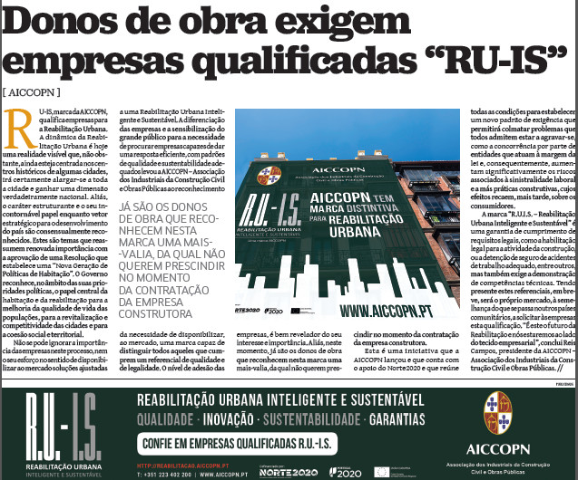 Para mais informações sobre a Marca da AICCOPN "RU-IS – REABILITAÇÃO URBANA INTELIGENTE E SUSTENTÁVEL", consulte os nossos Serviços: