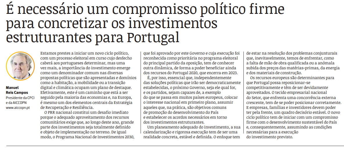 É NECESSÁRIO UM COMPROMISSO POLÍTICO FIRME PARA CONCRETIZAR OS INVESTIMENTOS ESTRUTURANTES PARA PORTUGAL