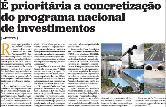 É PRIORITÁRIA A CONCRETIZAÇÃO DO PROGRAMA NACIONAL DE INVESTIMENTOS