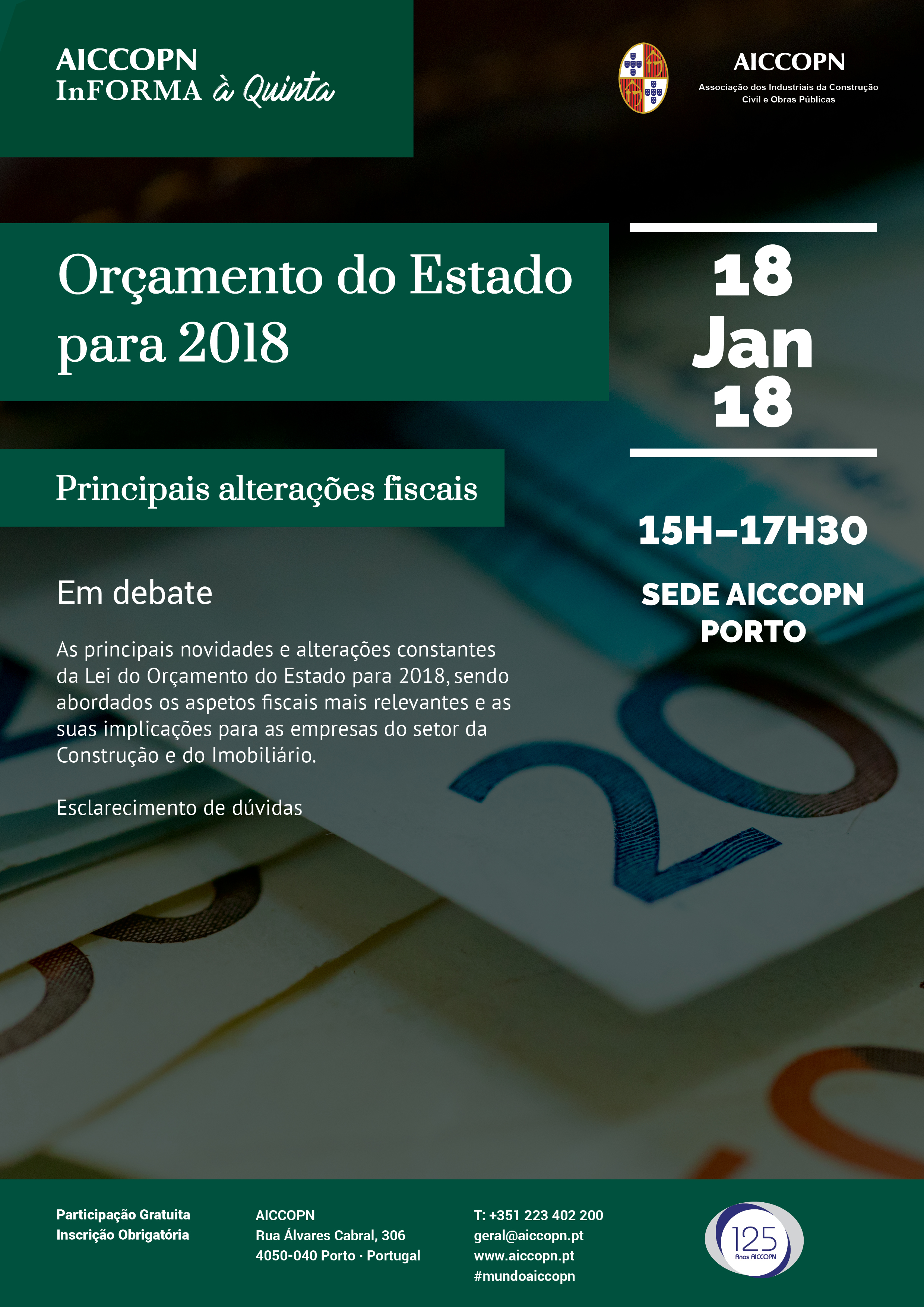 No âmbito do ciclo de sessões AICCOPN InFORMA à Quinta, estará em debate, dia 18 de janeiro, com início às 15h00, o tema: