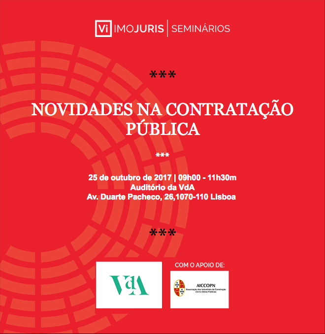 O IMOjuris, em parceria com a Sociedade de Advogados Vieira de Almeida (VdA), promove no dia 25 de outubro, em Lisboa, o 7º Seminário IMOjuris, subordinado ao tema 'Novidades na Contratação Pública'.