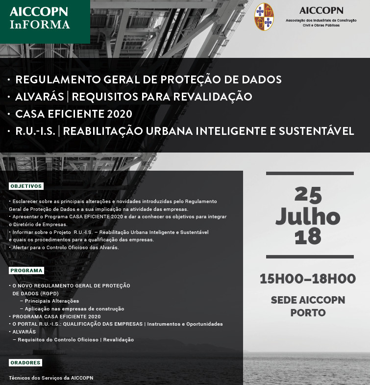 A AICCOPN promove, no próximo dia 25 de julho, na sua Sede, no Porto, uma nova sessão AICCOPN InFORMA que terá por objetivo: