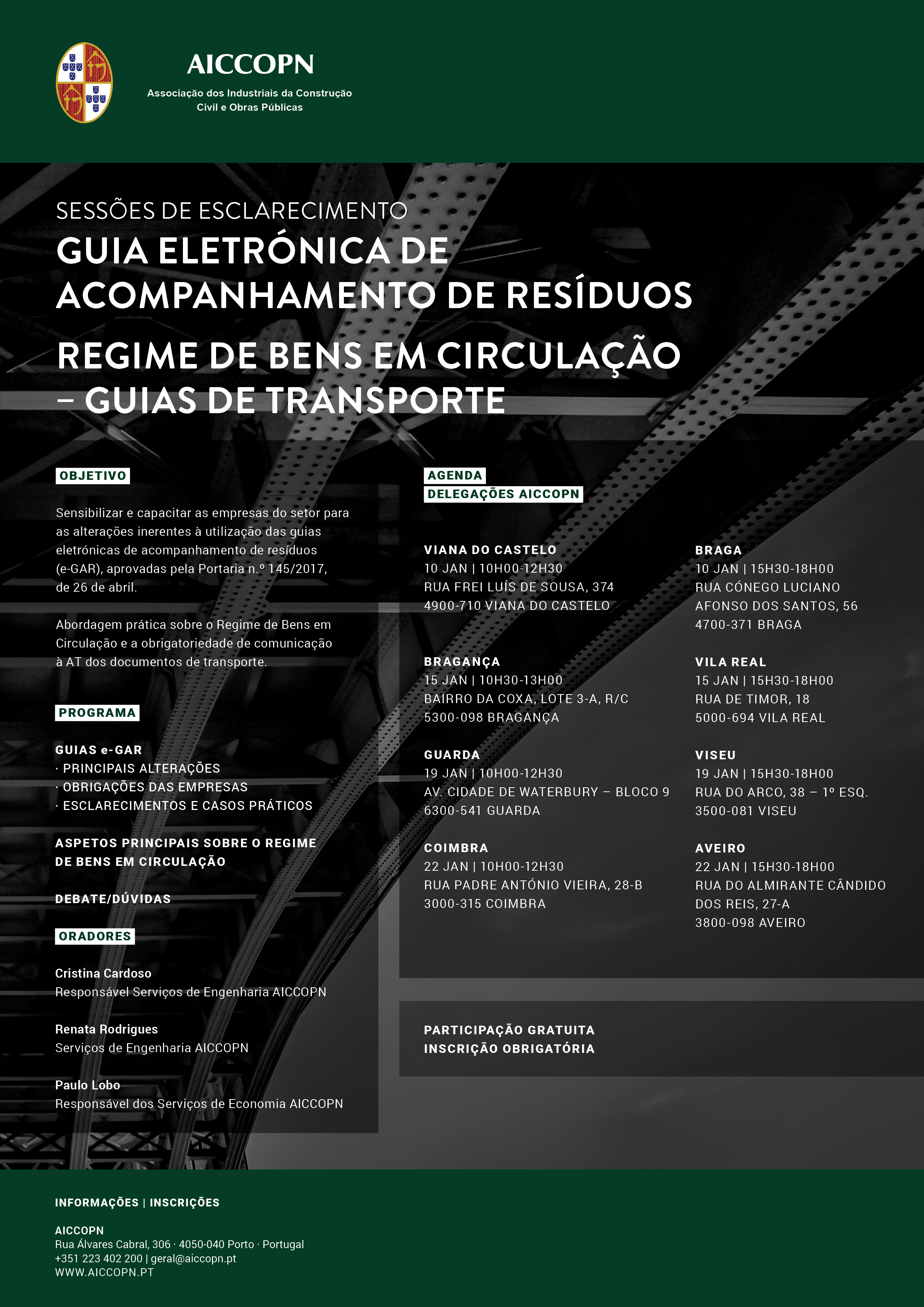 Sensibilizar e capacitar as empresas do setor para as alterações inerentes à utilização das guias eletrónicas de acompanhamento de resíduos (e-GAR), aprovadas pela Portaria n.º 145/2017, de 26 de abril.