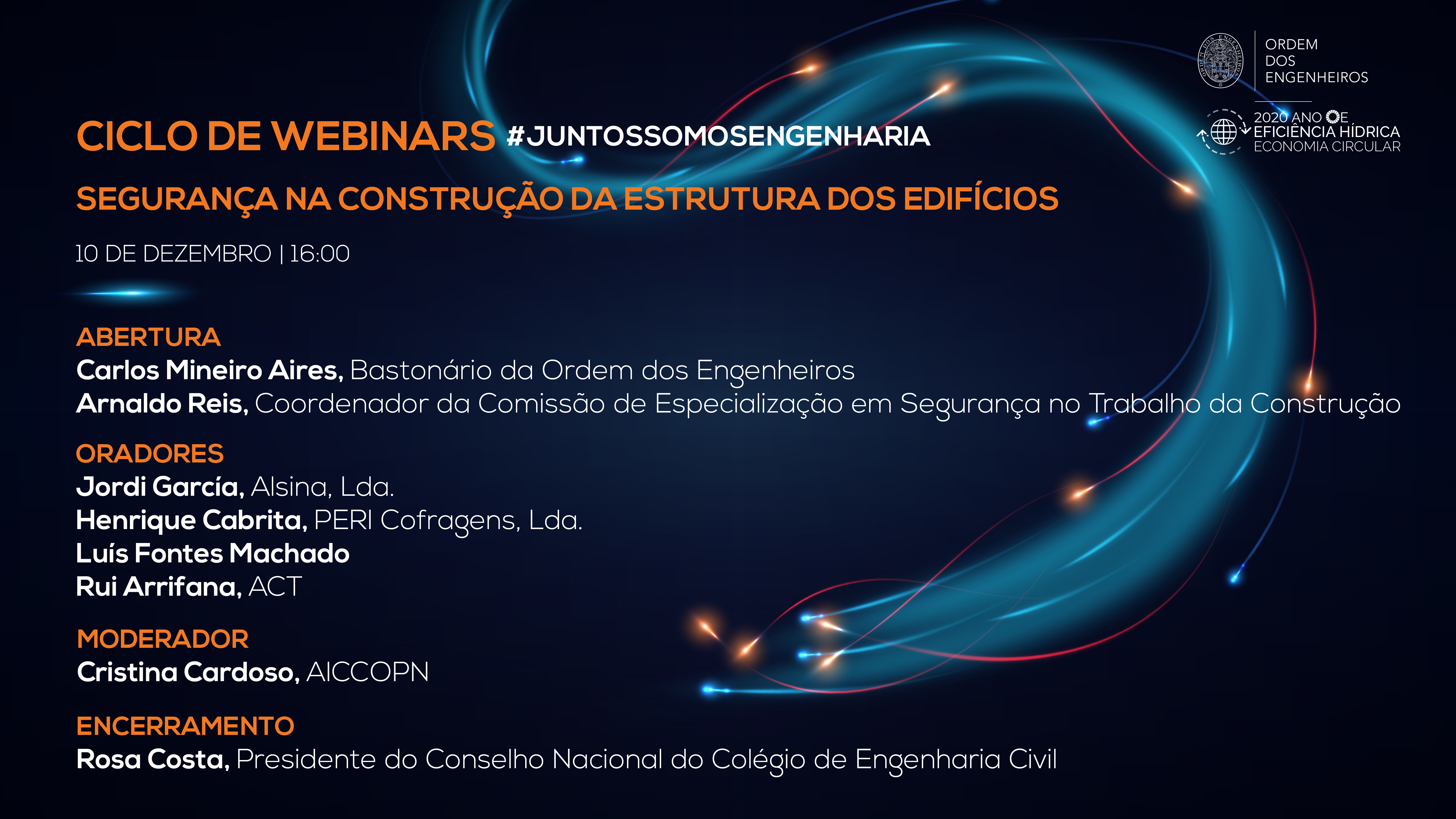 No âmbito do ciclo de webinars #JuntosSomosEngenharia que a Ordem dos Engenheiros se encontra a promover, decorrerá no próximo dia 10 de dezembro, pelas 16h00, um webinar dedicado ao tema Segurança na Construção dos elementos de betão armado de estruturas porticadas de edifícios, pilares, vigas e lajes, promovido pela Comissão de Especialização em Segurança no Trabalho da Construção.