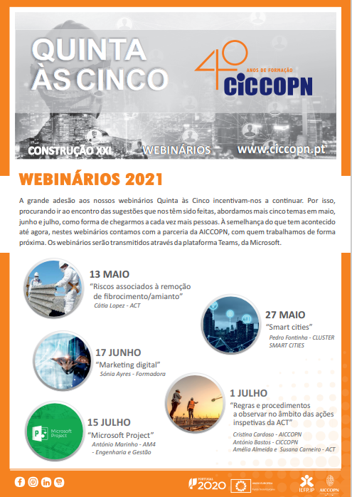 O Ciclo de Webinários 2021 que o CICCOPN, em parceria com a AICCOPN, tem vindo a promover, termina no próximo dia 15 de julho, às 17 h, com o tema "MS PROJECT", que conta com a apresentação de António Marinho da AM4 – Engenharia e Gestão.