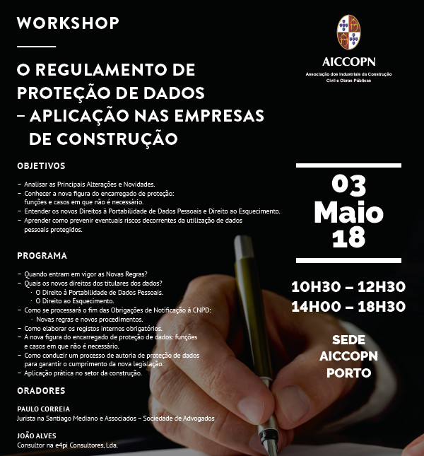 WORKSHOP | O REGULAMENTO DE PROTEÇÃO DE DADOS – APLICAÇÃO NAS EMPRESAS DE CONSTRUÇÃO