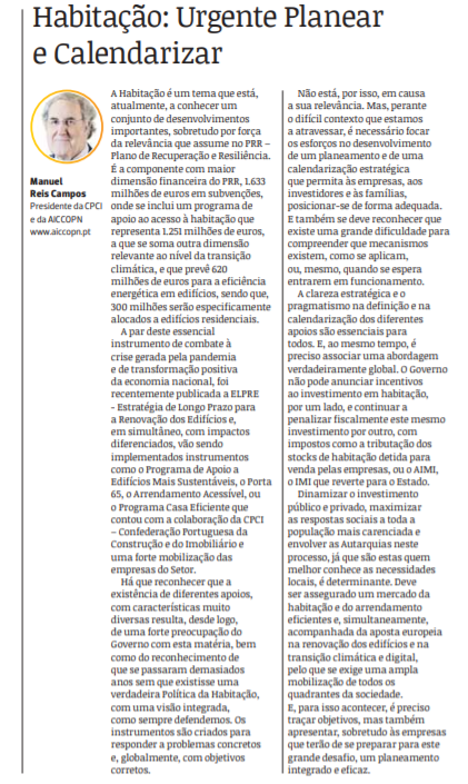 Artigo da CPCI e da AICCOPN na edição do Público Imobiliário desta semana, disponível para leitura aqui.
