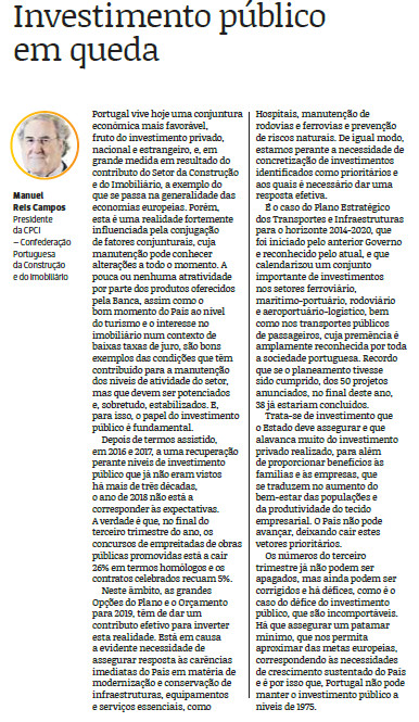 Artigo de Manuel Reis Campos, na qualidade de Presidente da CPCI – Confederação Portuguesa da Construção e do Imobiliário, no Público Imobiliário de 21 de novembro, disponível para consulta aqui.
