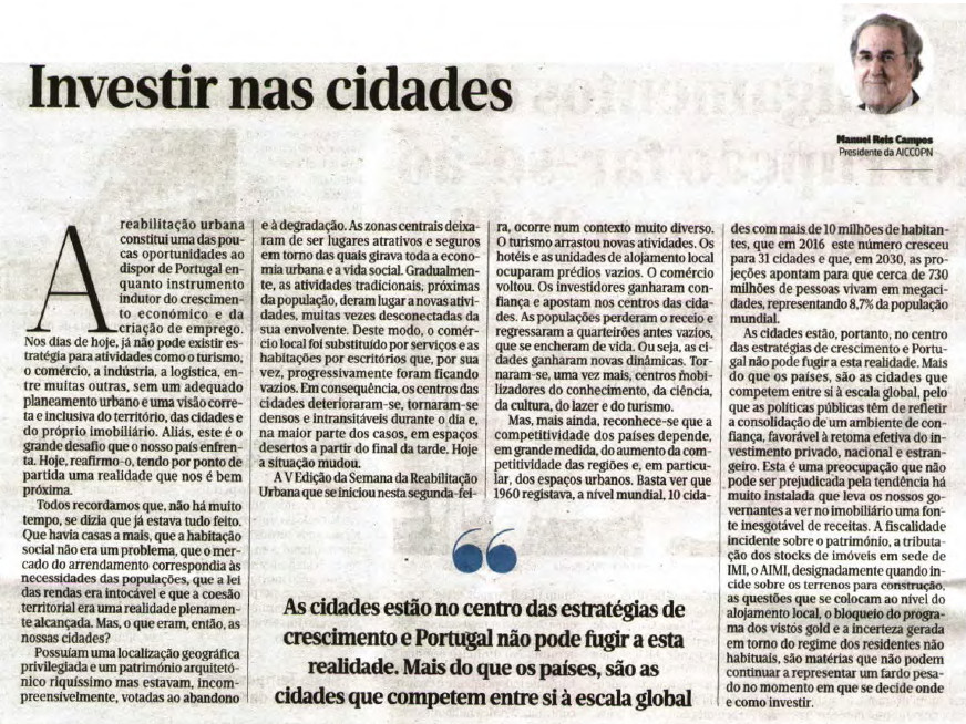 Crónica do Presidente da AICCOPN, Manuel Reis Campos, no Jornal de Notícias de 06 de novembro
