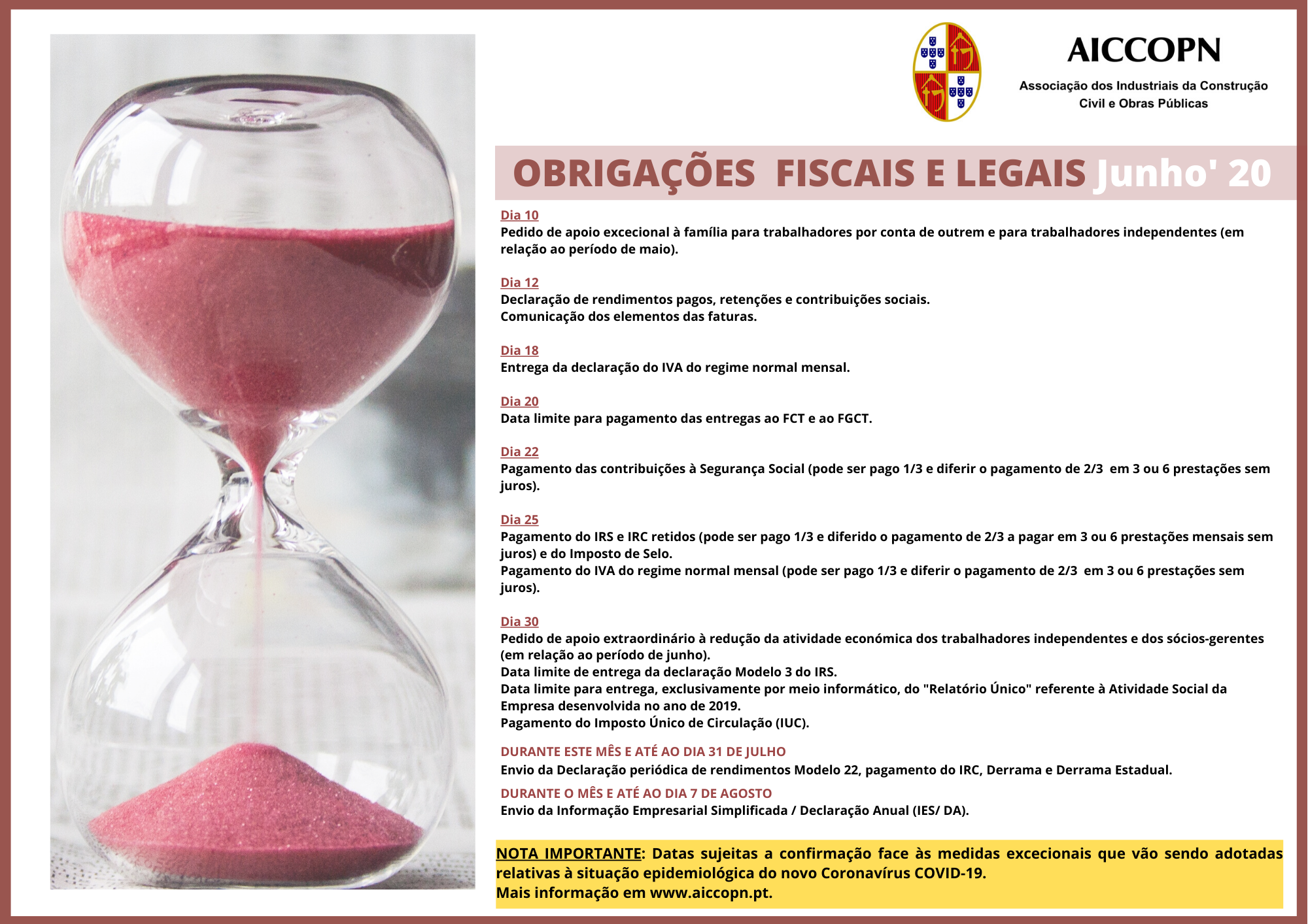 Obrigações Fiscais e Legais no mês de junho´2020