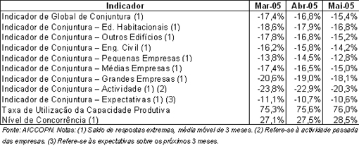 ii) no 1º trimestre de 2005 a produção de obras de engenharia aumentou 0,1%, sendo a alavanca do consumo de cimento,