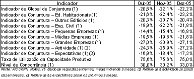 Em contrapartida, na segunda parte do ano, o comportamento foi inverso, com a perda de confiança de 5,9 pontos a ser plenamente justificada pela queda da procura em 4,4% entre o 2º e o 3º trimestres de 2005.