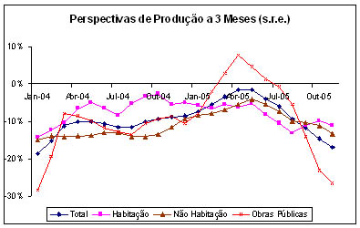 Tendo em conta o contributo igualmente negativo do segmento de construção de edifícios, o ano 2005 deverá fechar com uma queda de produção na ordem dos 4%. Tal estimativa é confirmada pelas previsões da Comissão Europeia relativas ao investimento em construção. Esse organismo reviu em baixa a previsões quanto ao crescimento do investimento em construção feito em Portugal, agravando a queda de 1%, que previa em Março deste ano, para uma variação de -3,6%.