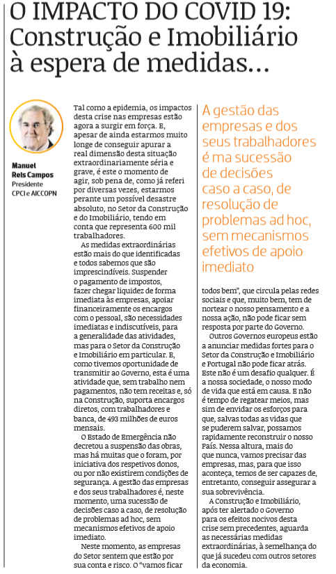 O IMPACTO DO COVID 19: CONSTRUÇÃO E IMOBILIÁRIO À ESPERA DE MEDIDAS…