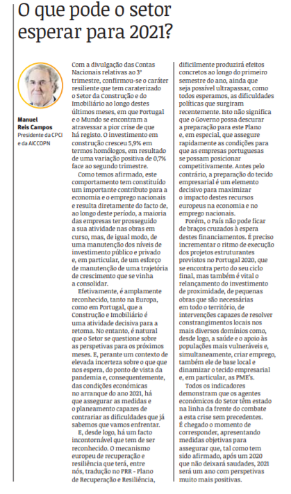 Artigo da CPCI e da AICCOPN na edição do Público Imobiliário desta semana, disponível para leitura aqui.
