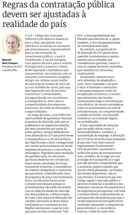 Artigo da CPCI e da AICCOPN na edição do Público Imobiliário de hoje, disponível para leitura aqui.