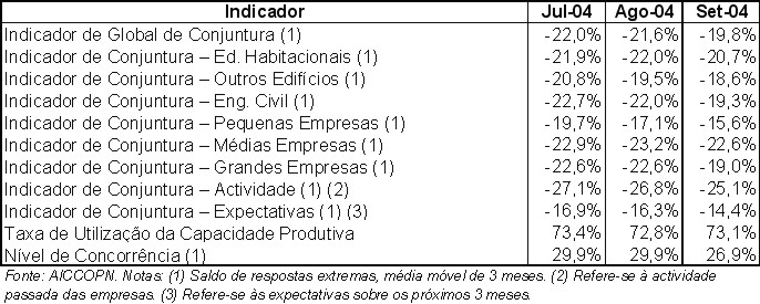 Síntese de Conjuntura do Sector da Construção – Setembro 2004