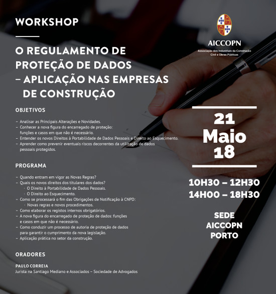 WORKSHOP | O REGULAMENTO DE PROTEÇÃO DE DADOS – APLICAÇÃO NAS EMPRESAS DE CONSTRUÇÃO